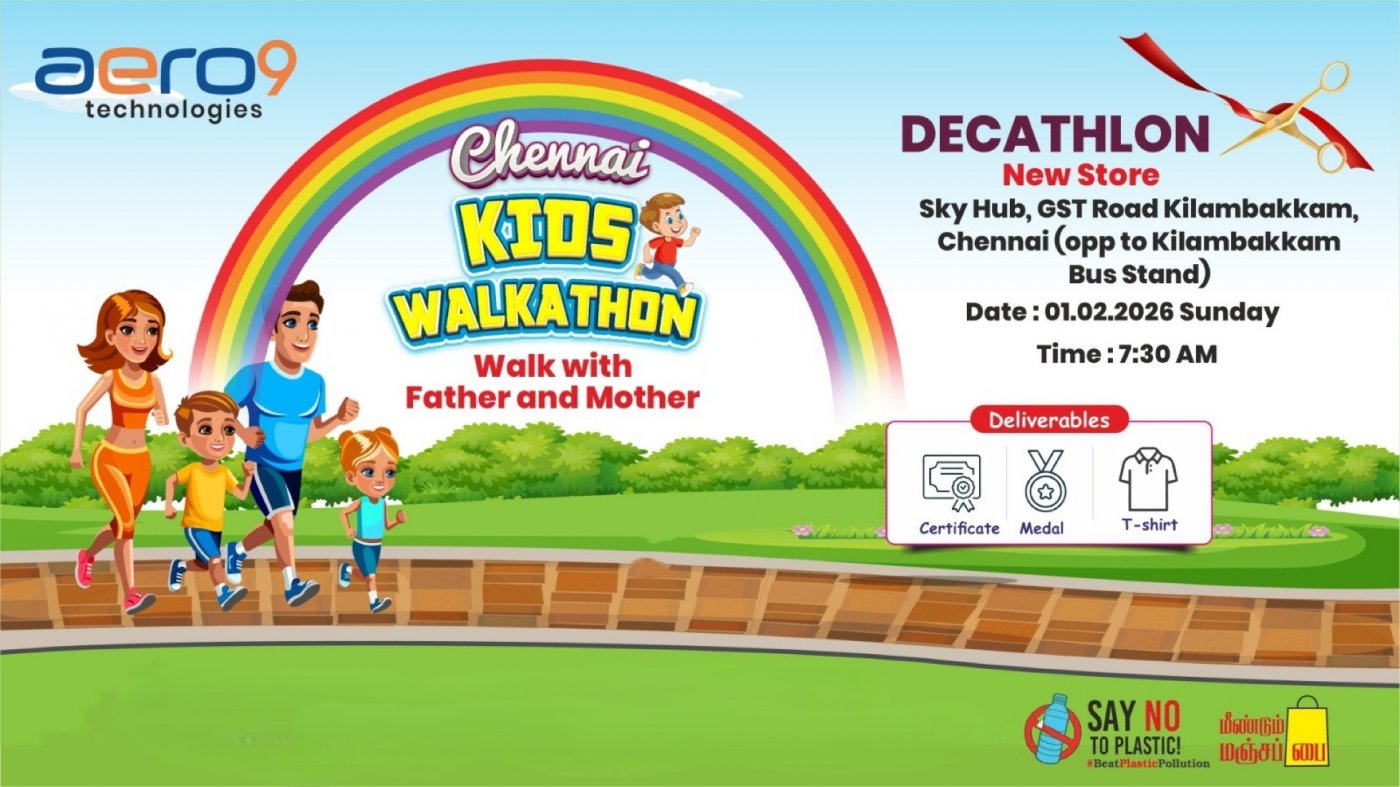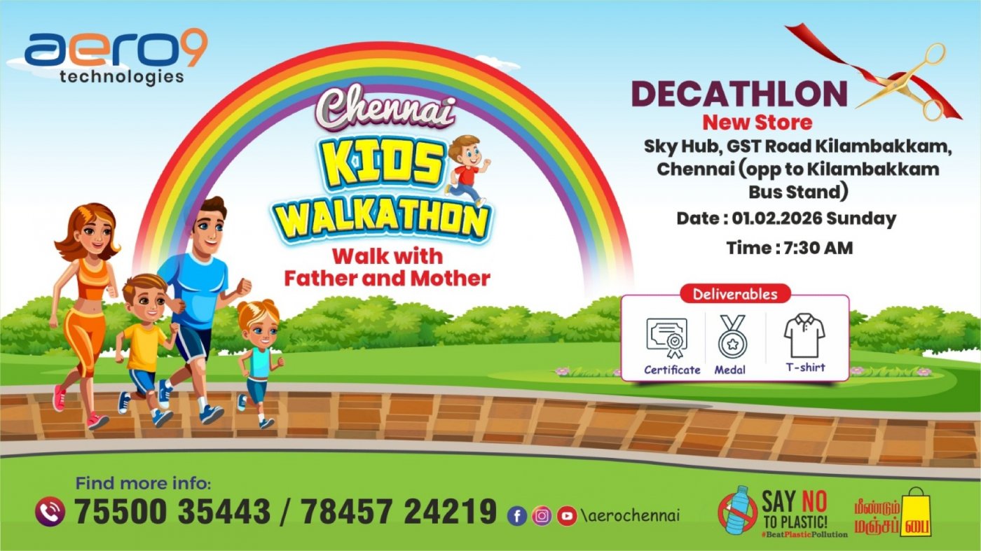 Aero9 Technologies Presents “Kids Walkathon” is a fun walk for kids along with parents and is a first of its kind. It’s organised by Aero9 Technologies, Chennai. It is not only a flag bearer of Health and Fitness also to create awareness about social issues among Children.