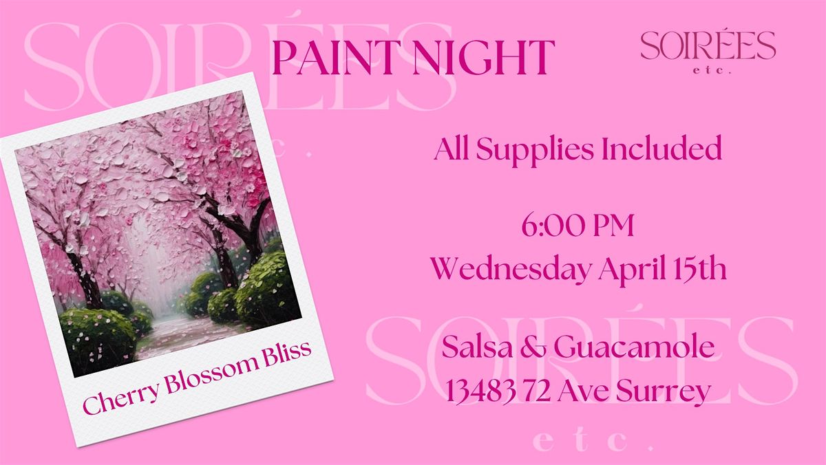 Step into spring with Cherry Blossom Bliss, a relaxing and creative paint night at Salsa & Guacamole 🌮🎨