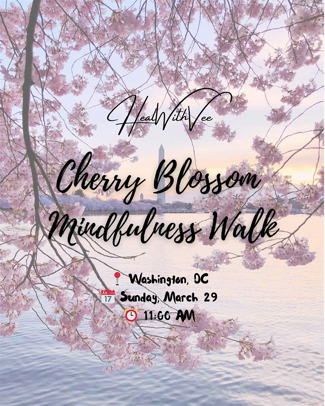 ๐ธ Join me for a HealWithVee Cherry Blossom Mindfulness Walk in Washington, D.C. as we gather beneath the beautiful blossoms at the Tidal Basin for a gentle walk in nature and a moment of presence within community. ๐ธ