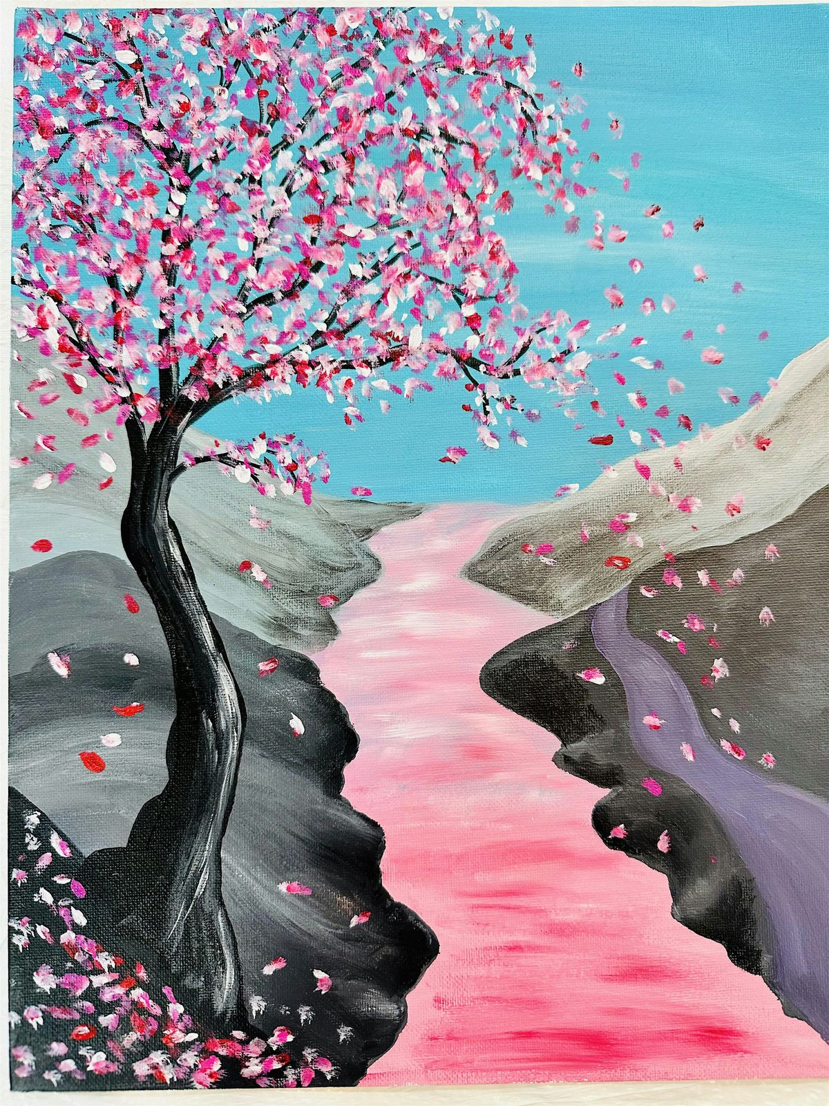 Whether you're bringing your mom, daughter, sister, or a group of friends, this fun and welcoming paint event is open to everyone. No painting experience is needed—our instructor will guide you step-by-step to create a beautiful cherry blossom landscape you’ll be proud to take home.