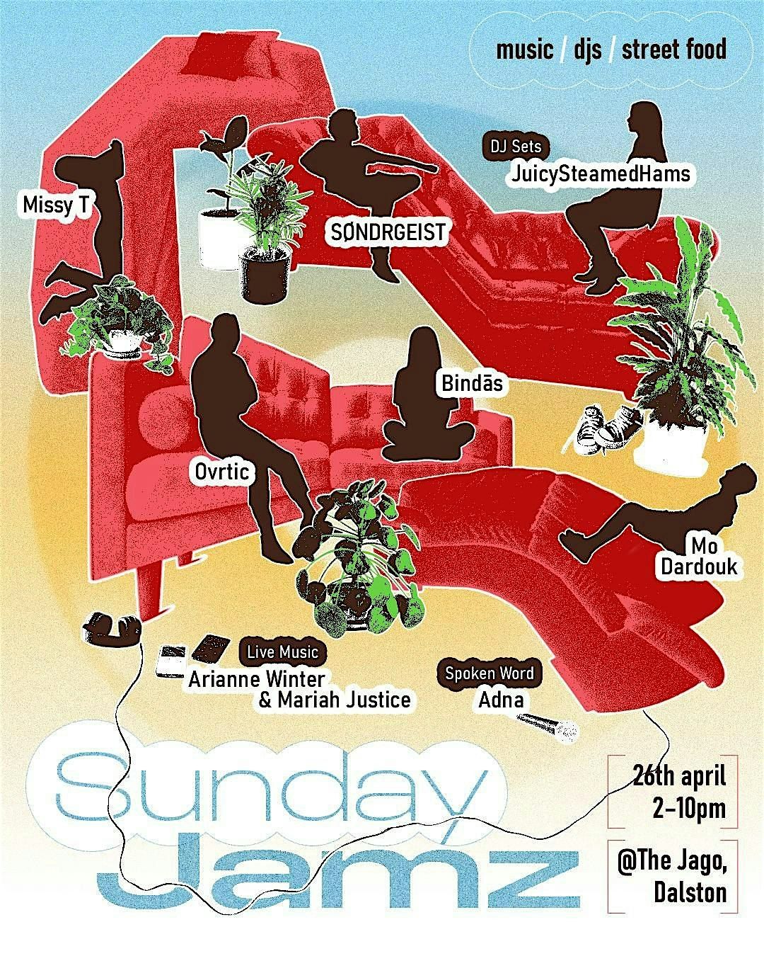 Sunday Jamz is a community-led session showcasing grassroots DJs and live talent from across London. Expect a day of warm, soulful sounds drawing from the UK underground dance music scene, with live music interludes woven throughout the day.