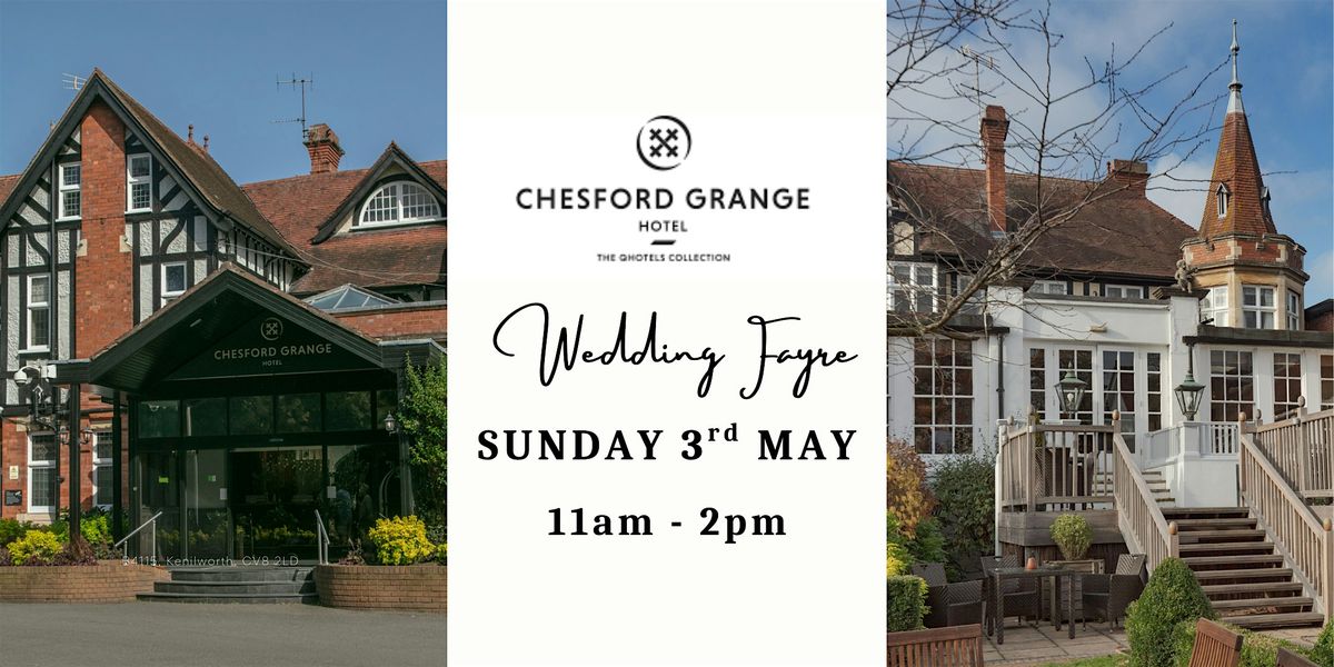 Welcome to the Chesford Grange Hotel Wedding Fayre! Join us at Chesford Grange Hotel on May 3, 2026 at 11:00 AM for a day filled with wedding inspiration and planning. Whether you're looking for the perfect dress, cake, or venue, you'll find it all here. Meet talented vendors, get ideas, and enjoy a day dedicated to all things weddings. Don't miss out on this special event!