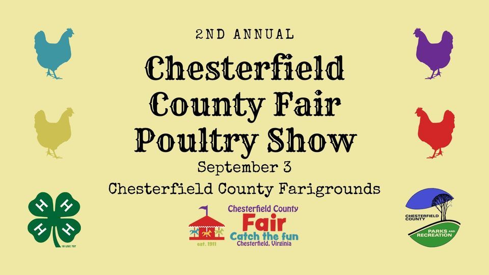 Pre-registration required https://chesterfieldcountyfair.org/poultry-show/. Contact Sierra Seekford [email protected] or Stephanie Rector [email protected] for more information.