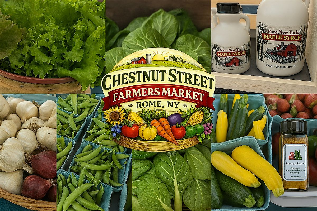 Rome's local farmers market in a convenient easy to navigate location. Wheelchair accessible with easy parking. We are a shoppers market with locally grown vegetables, fruits, meats, eggs, honey, maple syrup, spices, baked goods, handcrafted soaps, lotions, wool and alpaca products, jewelry, flowers, crafts, candles, and so much more. Don't forget to get a bite to eat at our food truck or pick up a sweet treat like Italian ice. All our vendors are like family and we work together to give you a market of all local products grown, raise, handcrafted by artisans and farmers. We take great pride in the variety of items in a small walk through market. Come see us every Wednesday in Rome on Chestnut Street from 2 to 6.