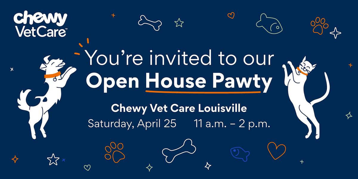 You're invited to help us celebrate the grand opening of Chewy Vet Care's newest Denver practice at our Open House Pawty on Saturday, April 25th, 2026. This is a complimentary event for pets and their people! Stop by from 11am-2pm to meet our passionate and friendly care team, and enjoy: