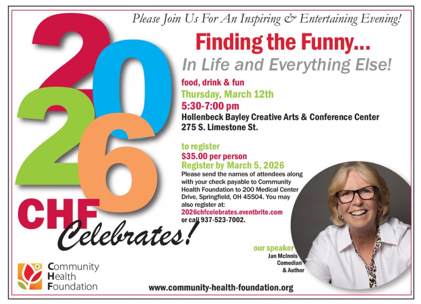 “Finding the Funny: In Life and Everything Else” is the theme of this year’s Community Health Foundation’s Annual CHF Celebrates, on Thursday, March 12th. The event is open to anyone who would like to enjoy an evening of fun, food and friends. Keynote speaker Jan McInnis is an American stand-up comedian, keynote speaker, author and comedy writer. McInnis specializes in comedy shows and humor keynotes for corporations, associations, and company events. Her act is clean and original, and it focuses on work (she spent 15 years as a marketing professional before comedy), family and day-to-day life. She has performed at hundreds of conferences and professional events, for groups such as the Mayo Clinic, Anthem, the Federal Reserve Bank of Atlanta, the American Bankers Association, and Pep Boys.