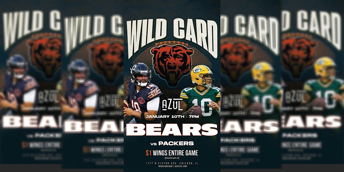 It doesn’t get bigger than this. The Chicago Bears take on the Green Bay Packers in a WIN-OR-GO-HOME Wild Card matchup — the winner advances in the NFL Playoffs. Catch every moment, every hit, and every touchdown in a high-energy setting at Azul.