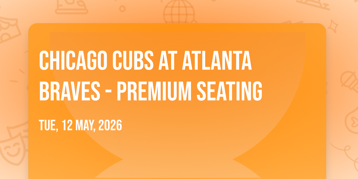 📍 Location: 33.8899, -84.4686🎉 Welcome to Chicago Cubs at Atlanta Braves - Premium Seating, where dreams come alive and possibilities are endless! 🏛️ Join us at Truist Park in the heart of Atlanta, GA for an event that defies expectations. 📅 On May 14th, 2026 at 11:15 PM, be part of something truly extraordinary as we bring together innovation, entertainment, and pure magic. ✨ Every aspect has been carefully designed to ensure an unforgettable experience for all our guests. Whether you're seeking adventure, inspiration, or simply a break from the ordinary, this event promises to deliver beyond your wildest dreams. 🎊 Prepare for a journey into the extraordinary!