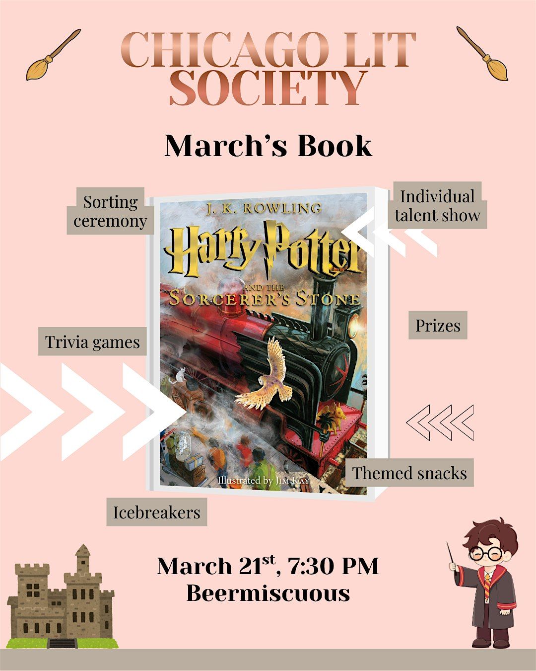 Step into the magical world of Hogwarts at the Chicago Lit Society’s Harry Potter-themed book club night! Whether you’re a Gryffindor, Ravenclaw, Hufflepuff, or Slytherin, join fellow book lovers for an evening of discussion, games, and magical fun.