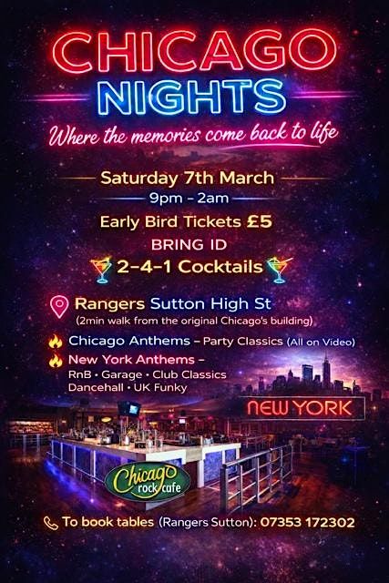 Rangers Sutton High St(2 min walk from the original Chicago's Building)