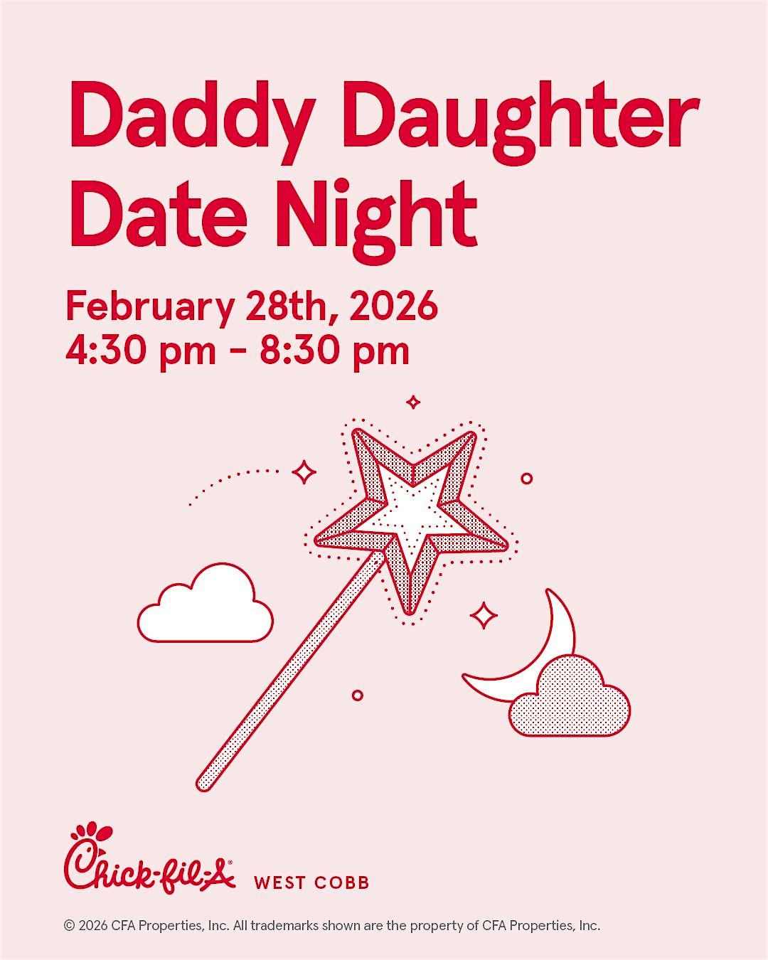 Join us for a magical Daddy Daughter Date Night: Princess & the Cow Theme from 4:30 PM–8:30 PM, an evening designed to celebrate the special bond between dads and daughters. We encourage dads and daughters to dress in their finest date-night attire for a night full of fun and memories. The event will feature professional photography, face painting, design-your-own princess crown, raffle-style games, and a horse-drawn carraige ride in Cinderella's very own carraige! It’s the perfect mix of charm, creativity, and unforgettable moments!