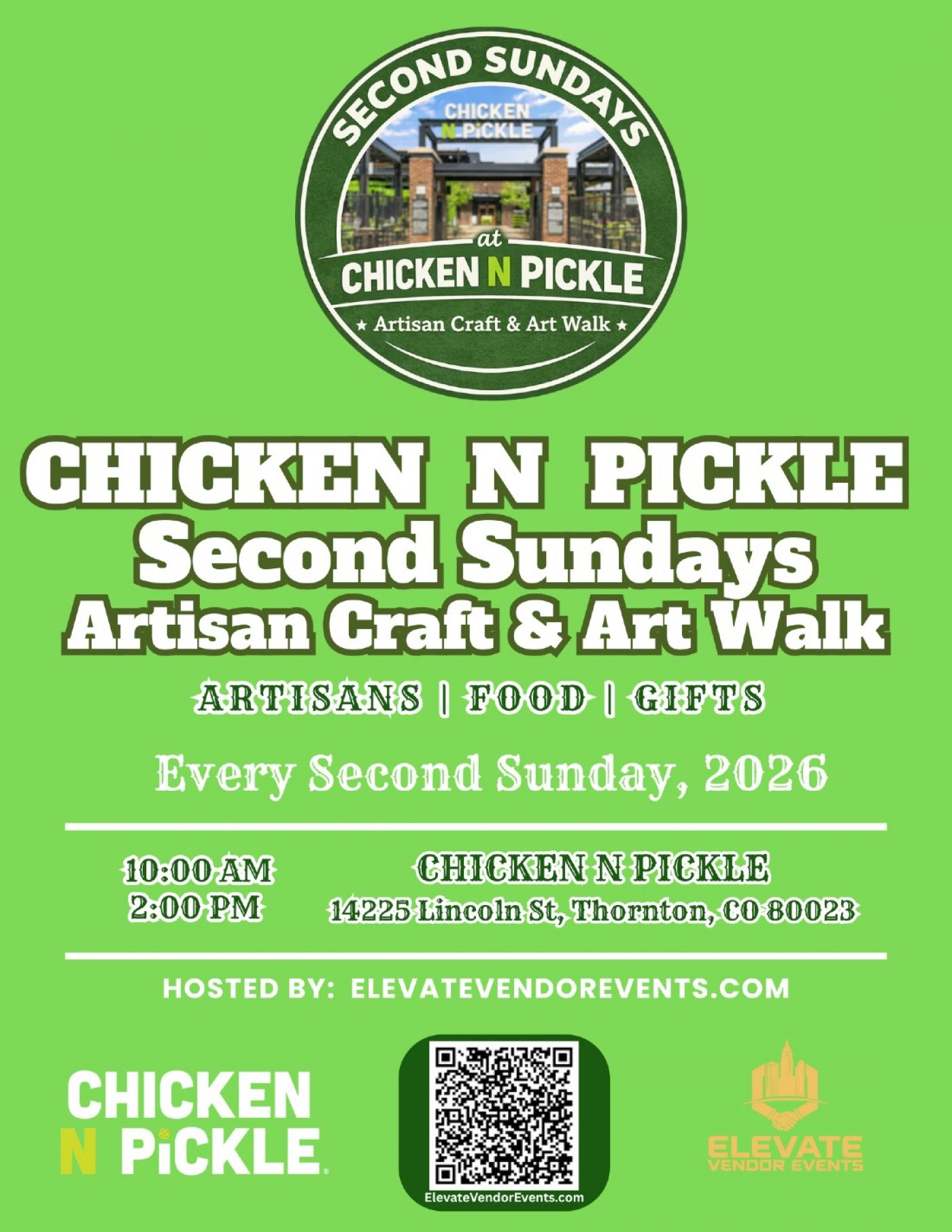 Join us for Second Sundays Artisan Craft & Art Walk at Chicken N Pickle in Thornton.