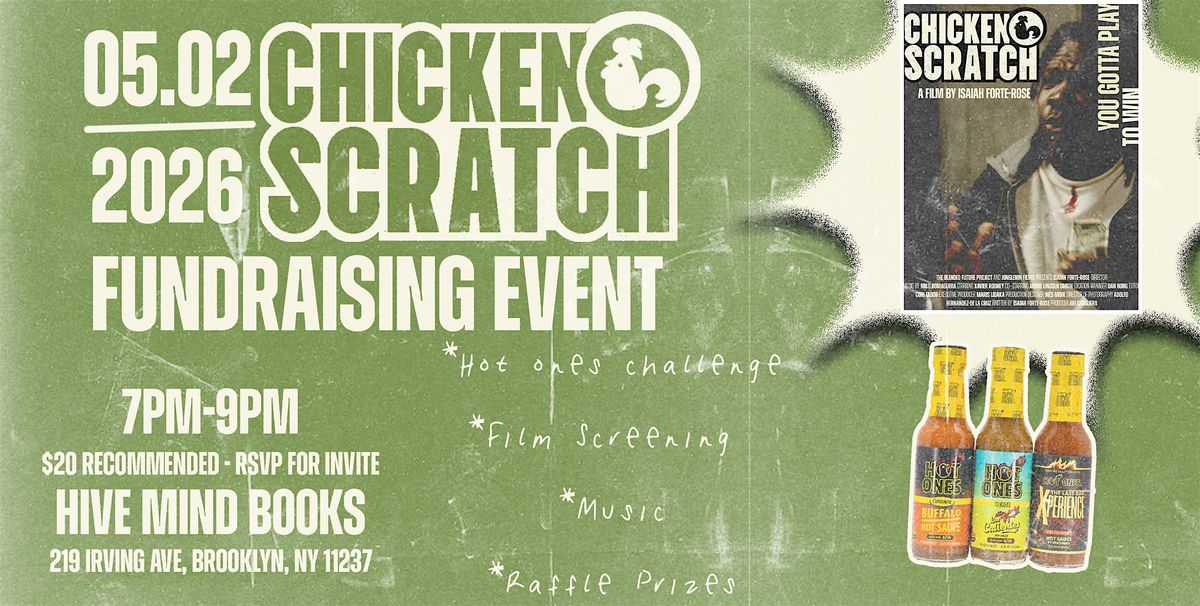 CHICKEN SCRATCH is nearing the finish line of this phase of our filmmaking journey, and we need our community's help to transition to the next phase! To make that happen, we're hosting a night of prize raffles, socializing, the Hot Ones spicy wing challenge, and a private rough cut screening of our film for feedback/market research purposes. We hope you can join us! Proceeds go to post-production expenses, film festival submission fees, and travel expenses.