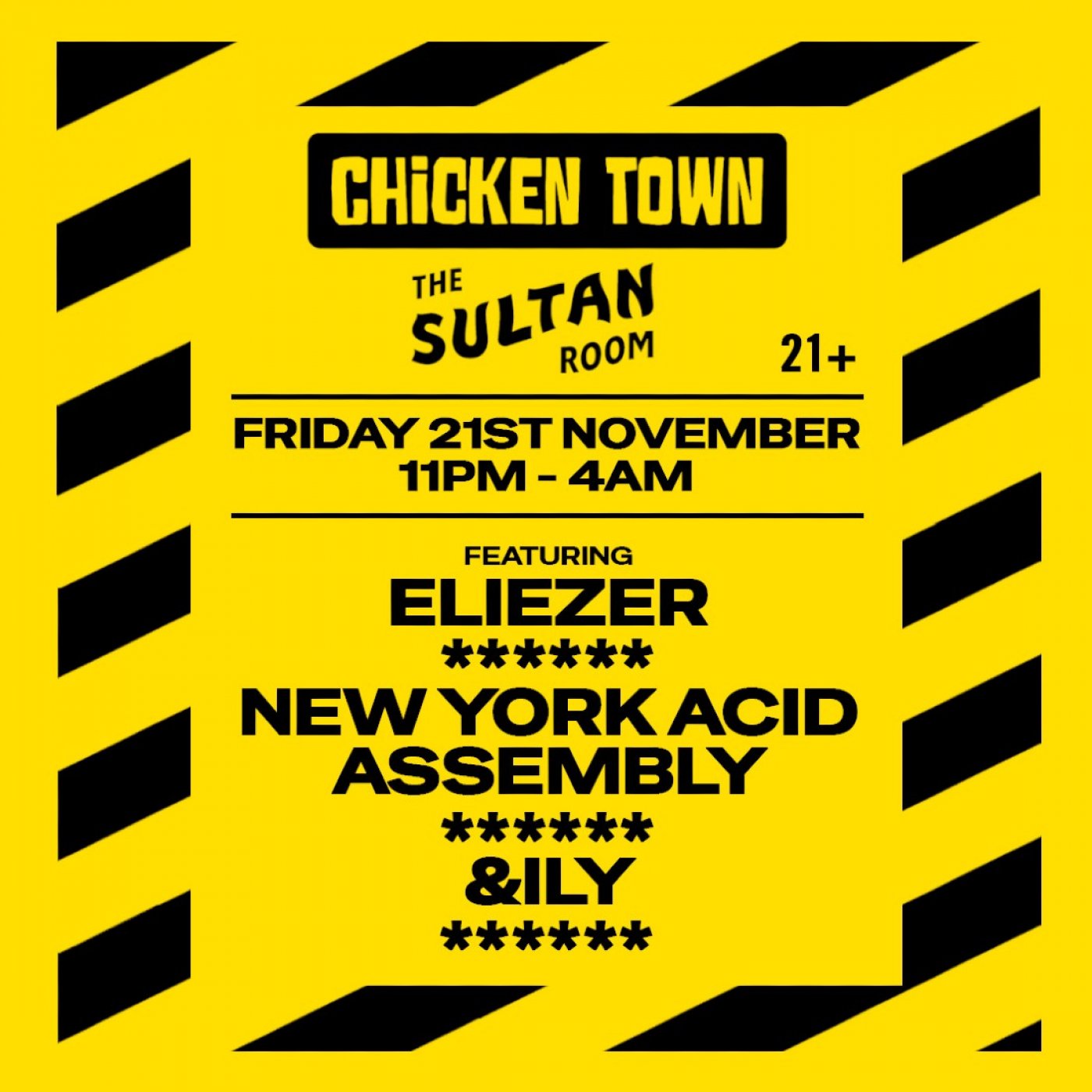 The revered Chicken Town crew lands at The Sultan Room to celebrate the release of head honcho Eliezer’s latest single that perfectly captures the raw unmistakable sound of the Chicken Town label. A showcase of acid grooves indie sleaze and late-night basement energy from a lineup of NYC’s most respected selectors.