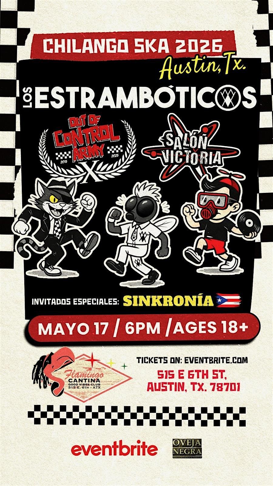This tour features three pillars of Mexican ska plus special international guests with live performances from Los Estramboticos, Out of Control Army, Salon Victoria, plus Special Guests: Sinkronia!