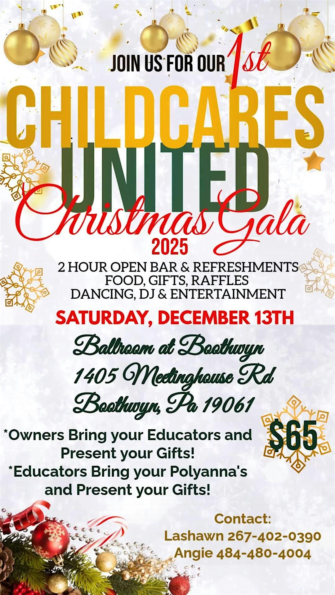 Get Ready to Celebrate the Season at Our 1st Childcares United Christmas Gala! Join us for an unforgettable evening of holiday cheer, connection, and community spirit at the very first Childcares United Christmas Gala 2025! This festive event is designed for childcare owners and educators to come together, unwind, and celebrate all the incredible work we do for our children and families.