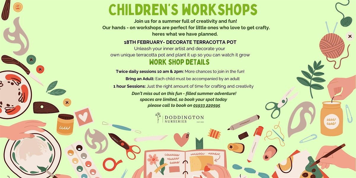 Welcome to our Children's Workshop at Doddington Nurseries! Get ready for a fun-filled day of activities, crafts, and games for kids of all ages. Join us on 18th Febuary at 10am for an afternoon of learning and laughter.
