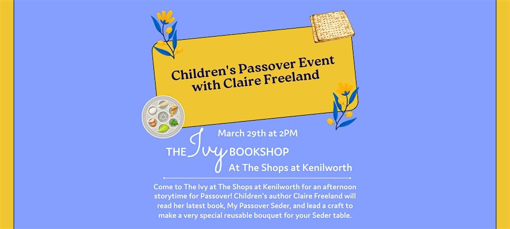 Come on over to The Ivy at The Shops at Kenilworth for an afternoon storytime for Passover! Children's author Claire Freeland will read her latest book, My Passover Seder, and lead a craft to make a very special reusable bouquet for your Seder table.