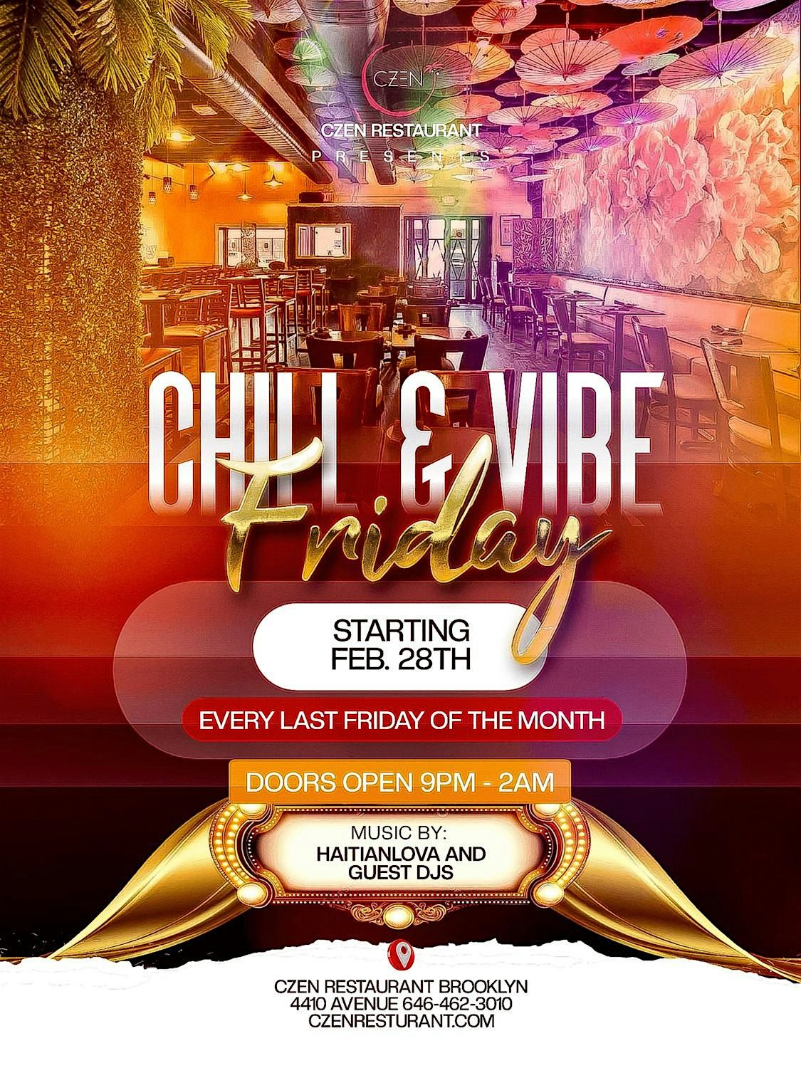 Experience the ultimate Chill & Vibe Friday at Czen Restaurant Brooklyn, where great music, good vibes, and an unforgettable atmosphere come together.