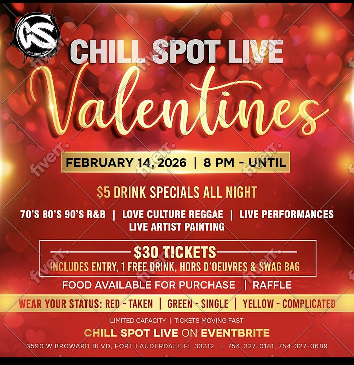 Chill Spot Live Valentine\u2019s Edition Hosted by Faerie Faye Kitchen We bring a Valentine's event at the Chill Spot Lounge. Wear your colors while being entertained.