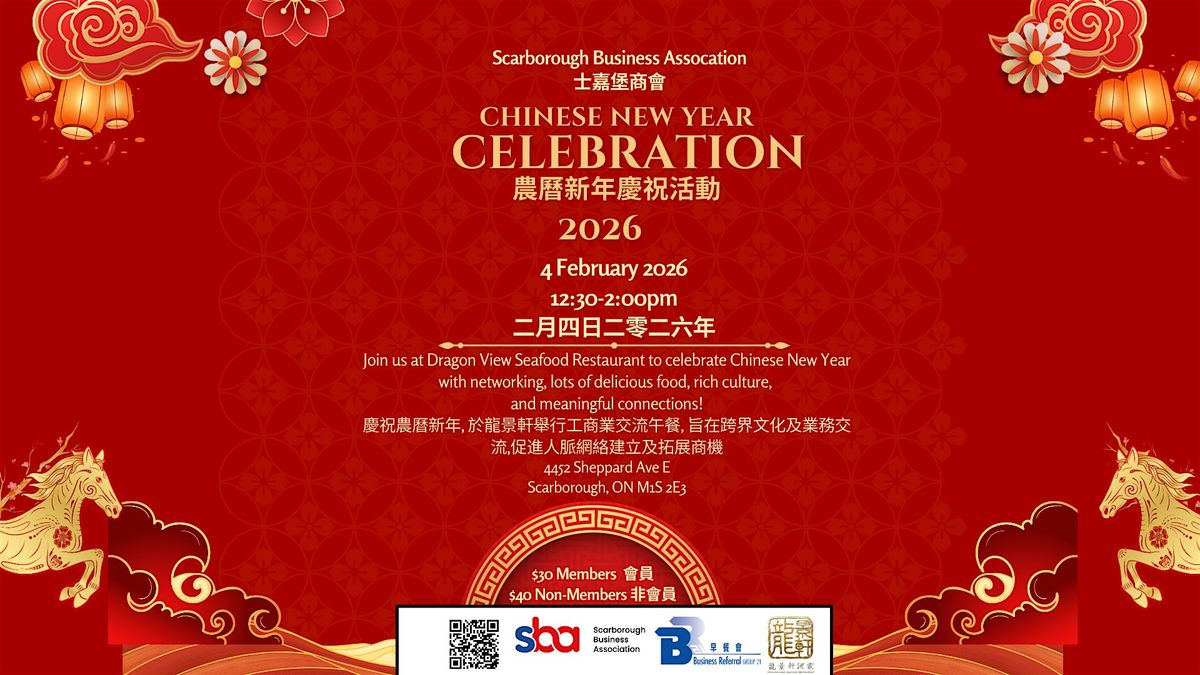 Join the Scarborough Business Association and Business Referral Group 21C on February 4, 2026 between 12:30pm-2:00pm at Dragon View Seafood Restaurant , 4452 Sheppard Ave E, Scarborough, ON M1S 2E3 for an afternoon of networking, authentic Chinese cuisine, vibrant culture, and meaningful connections. Don’t miss this chance to connect, celebrate, and welcome the Lunar New Year together!