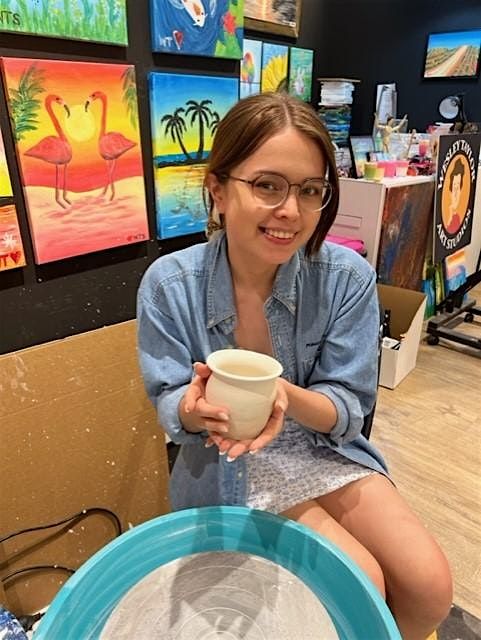 First time experience throwing clay on the pottery wheel, a social way to let your creative experience be fun, rewarding and relaxing.