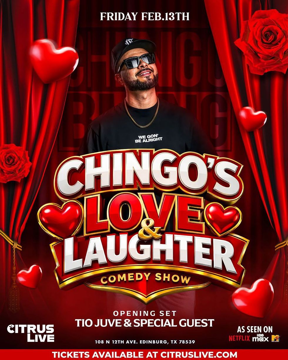🌟 Be part of history at Chingo's Love & Laughter Comedy Show, an extraordinary gathering that will captivate your imagination! 🏛️ The prestigious Citrus Live in Edinburg, TX sets the stage for an unforgettable experience on February 12th, 2026 at 06:00 PM. ✨ They are bringing together the finest elements of entertainment and innovation to create moments that will take your breath away. From the moment you arrive, you'll be immersed in an atmosphere of wonder and excitement. 🎯 This carefully planned event ensures every guest experiences something truly special. 🎊 Early booking is recommended for this must-attend event of the season!http://maps.seatics.com/CitrusLive_EndstageTables_2025-09-26_2025-09-26_1910_09262025_115403_SVGC_tn.png