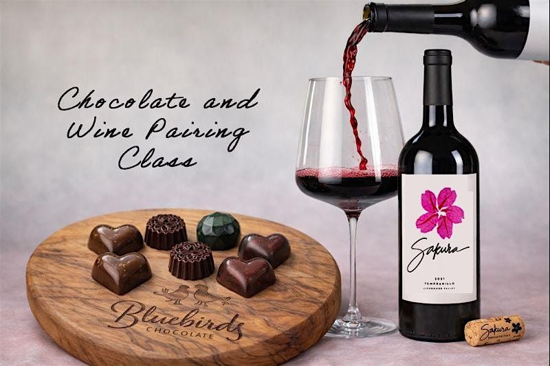 Join us for a fun, in-person experience with Bluebirds Chocolate and Sakura Winery! Enjoy guided choclate and wine pairing, featuring artisan chocolates paired with select award winning wines.