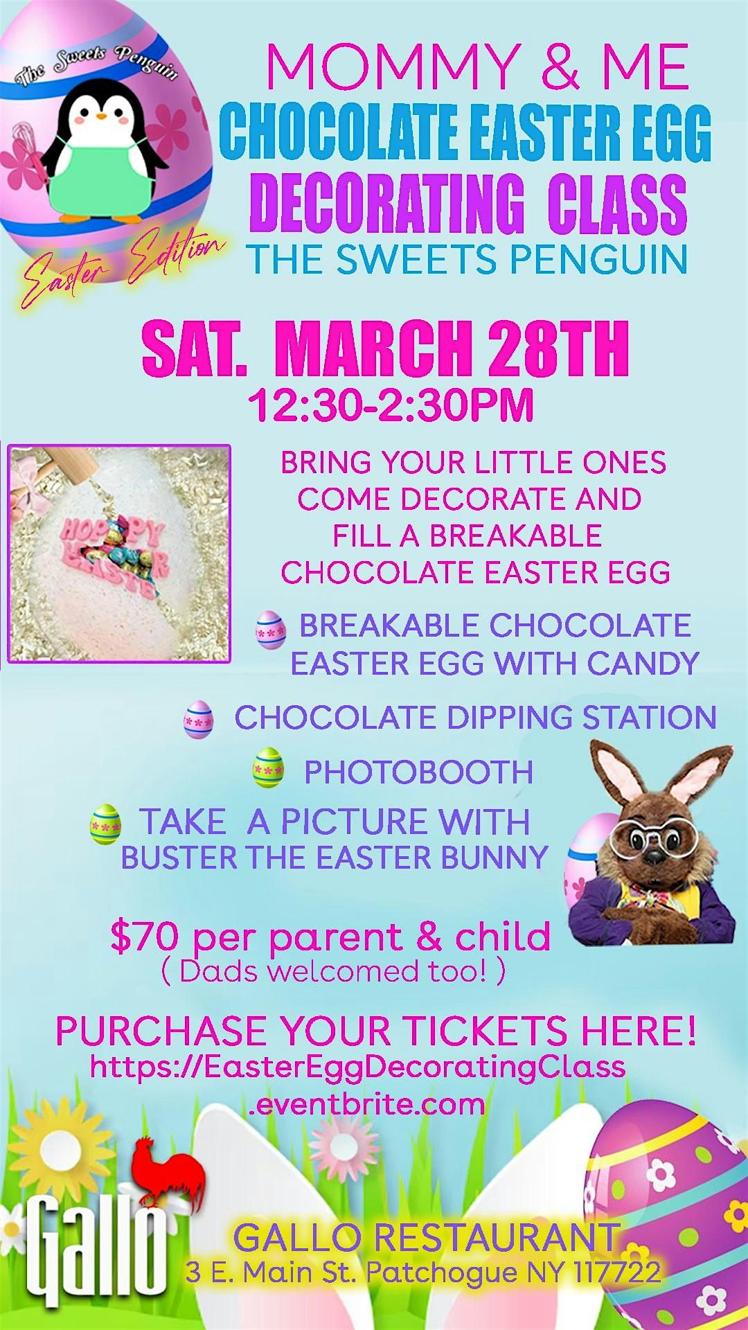 Join me at Gallo Restaurant to decorate your very own breakable chocolate Easter egg! You will get to write on it, add sprinkles, and add chocolate charms. Then you will get to fill your egg with small toys and candy so you can break it open whenever your ready. We will also have a free chocolate dipping station, photobooth booth with printed photos, and Buster the Easter Bunny!🐰