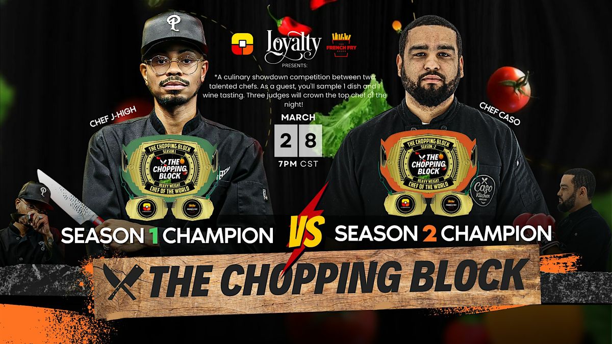 The Chopping Block is an epic culinary showdown! Right before their eye, guests watch as two talented chefs battle it out in a cooking competition that will leave your taste buds tingling. As a guest, you'll have the exclusive chance to sample delectable dishes prepared by the chefs while savoring complimentary wine samples. You will also get the opportunity to be a part of the action by rating the chefs and helping to crown the top chef of the night alongside our panel of three esteemed judges! Get ready for a night of gourmet delights, friendly competition, and unforgettable flavors at The Chopping Block!