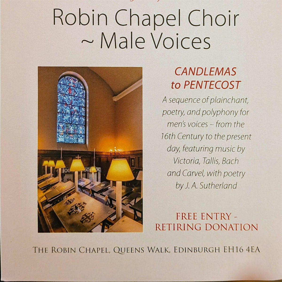 Plainchant, poetry & polyphony for men's voices from 16th Century to present day: Victoria; Tallis; Carver; Bach; poetry by JA Sutherland.