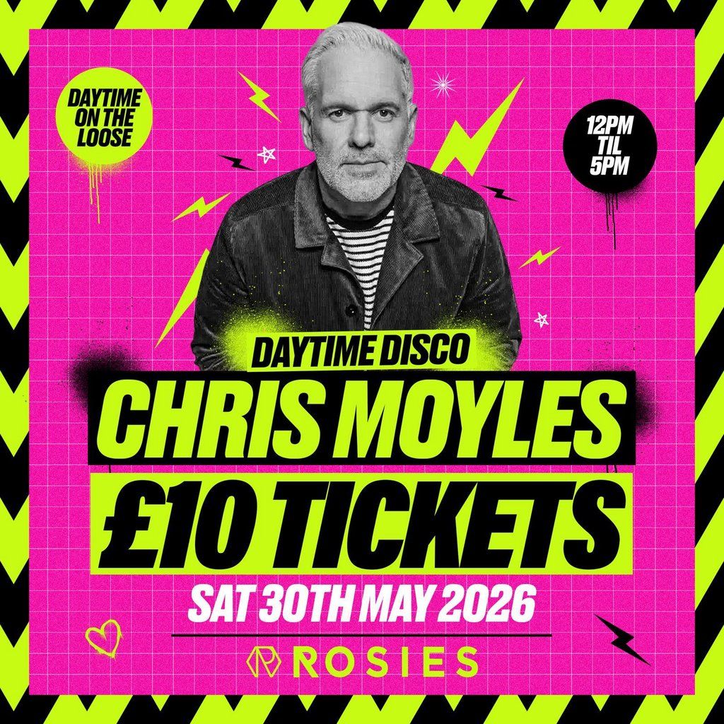 Chris Moyles Exclusive DJ Set At Rosies Birmingham Daytime Club. Saturday 30th May 2026 . Throwback Anthems, Dancefloor Bangers!!Music Genres : 1990s, Club Classics, Disco, Retro and Throwbacks