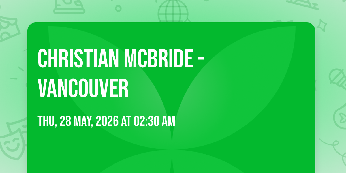 📍 Location: 49.2819, -123.133✨ Experience the magic of Christian McBride - Vancouver, where moments become memories that last a lifetime! 🏛️ The iconic The Centre in Vancouver for Performing Arts in Vancouver, BC sets the perfect stage for an unforgettable celebration on May 28th, 2026 at 02:30 AM. 🌟 It's been a curated experience that brings together the best of entertainment and innovation, creating an atmosphere of wonder and excitement. From the moment you arrive, you'll be immersed in a world where the ordinary transforms into the extraordinary. 🎊 Book early to secure your place in what promises to be an event that will be talked about for years to come!