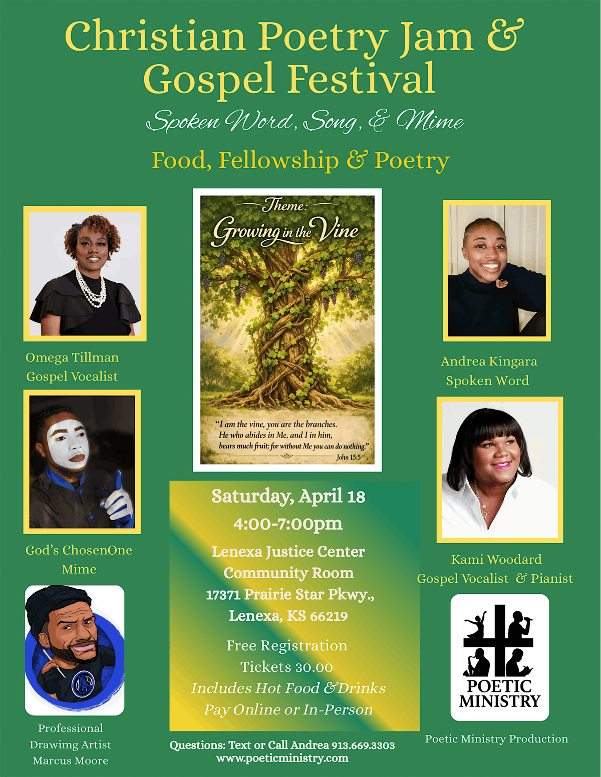 A loving environment for all to enjoy live Gospel music, Poetry, Song, and Dance. Come join a community of fun and fellowship!About this Event