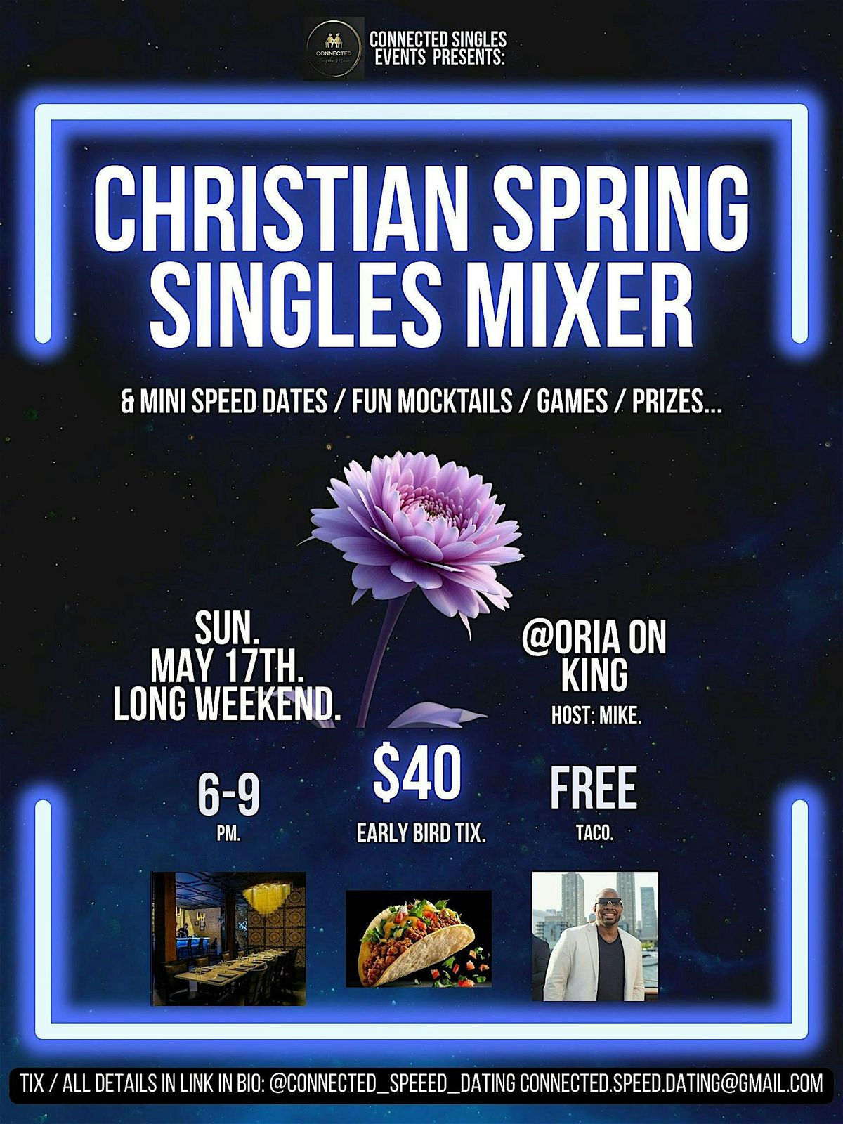 'Christian Spring Singles Mixer' (and mini speed dates, mocktails, games, prizes, etc.)...
