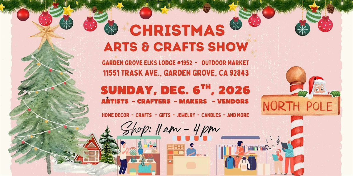 Join us on Sunday, December 6th in Garden Grove, California for a festive day of shopping, creativity, and family fun! Explore a wonderful variety of unique handmade goods, beautiful artisan jewelry, charming Christmas décor, and so much more — all created by talented local makers.