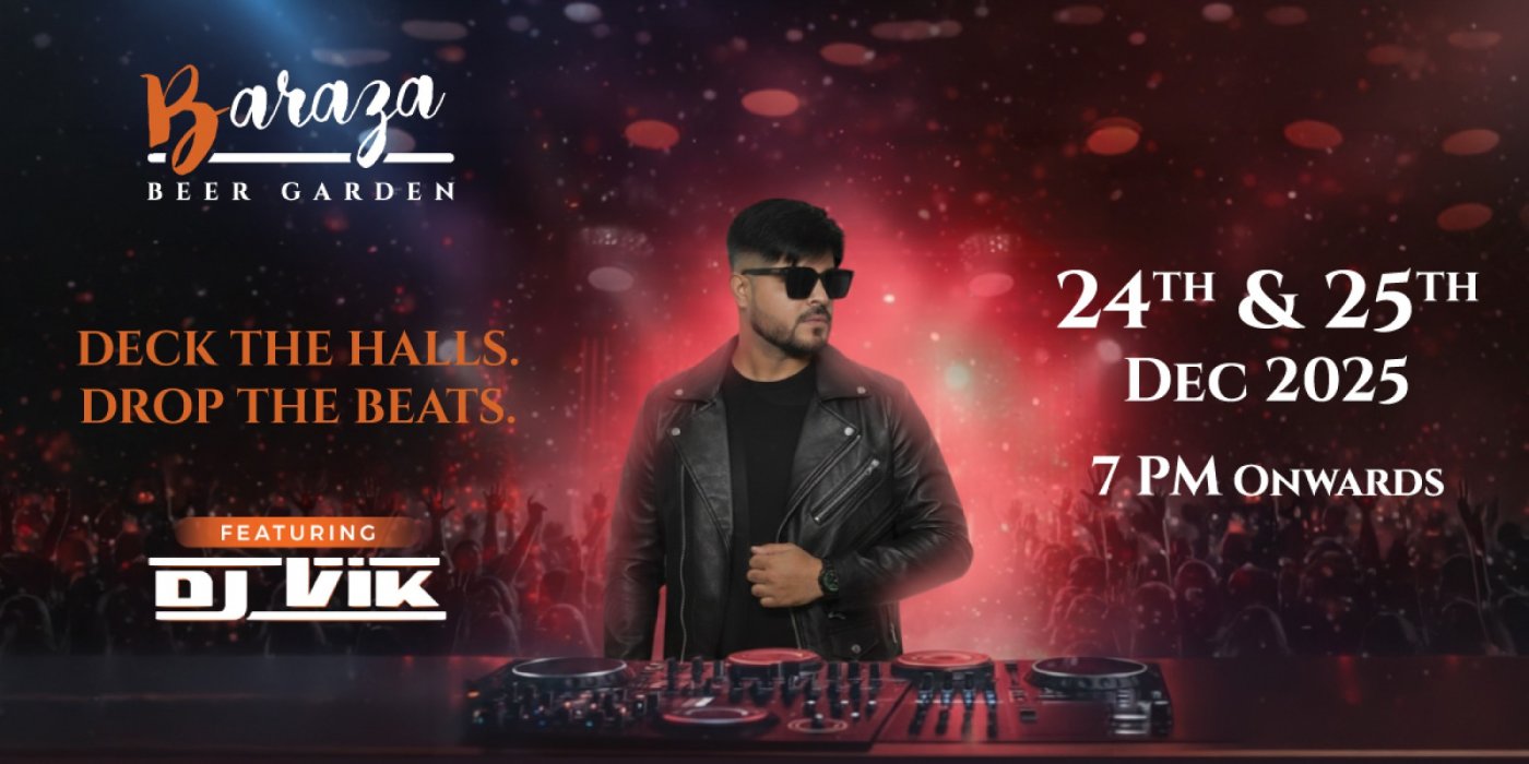 Join us from 7 PM onwards on 24th December (Christmas Eve) and keep the celebrations going on 25th December (Christmas Night) with festive beats, great vibes, and a crowd that’s here to party. Twinkling lights, groovy music, and plenty of reasons to raise a glass. This is Christmas, Baraza Beer Garden-style.