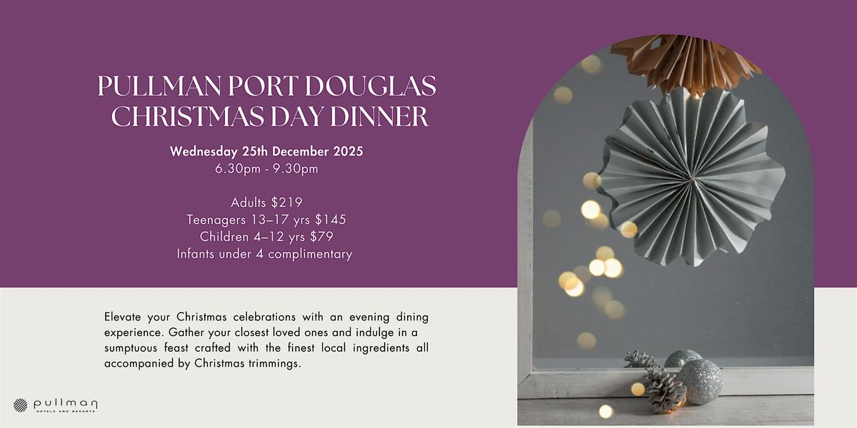 Welcome to the Christmas Day Dinner at Pullman Port Douglas Sea Temple Resort and Spa! Join us for a festive feast with all the trimmings in a beautiful beachfront setting. Indulge in a delicious spread of traditional Christmas dishes, seafood buffet and carvery station and enjoy quality time with your loved ones. All complemented by a 3-hour beverage package and a special welcome Christmas cocktail.