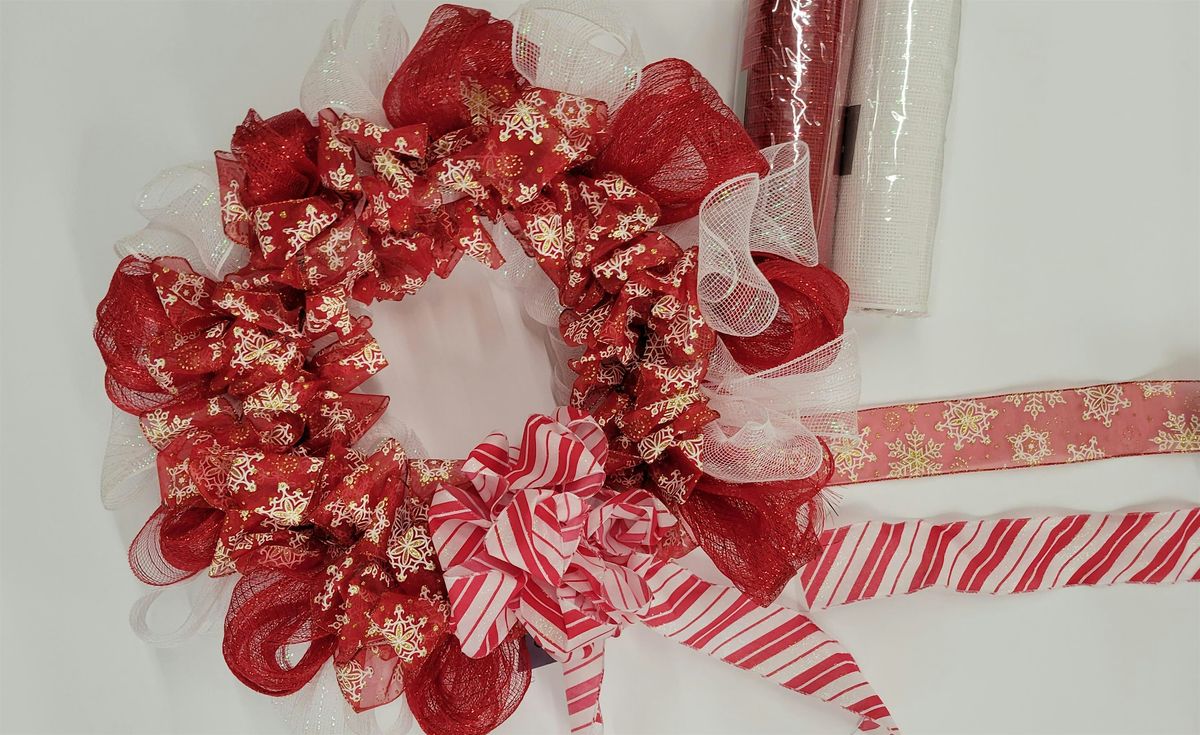 Want to gain skills to make deco mesh wreaths for any holiday or occasion? Come and join Malia for this awesome and simple beginner deco mesh wreath workshop, where you can make a holiday wreath with deco mesh and ribbon!