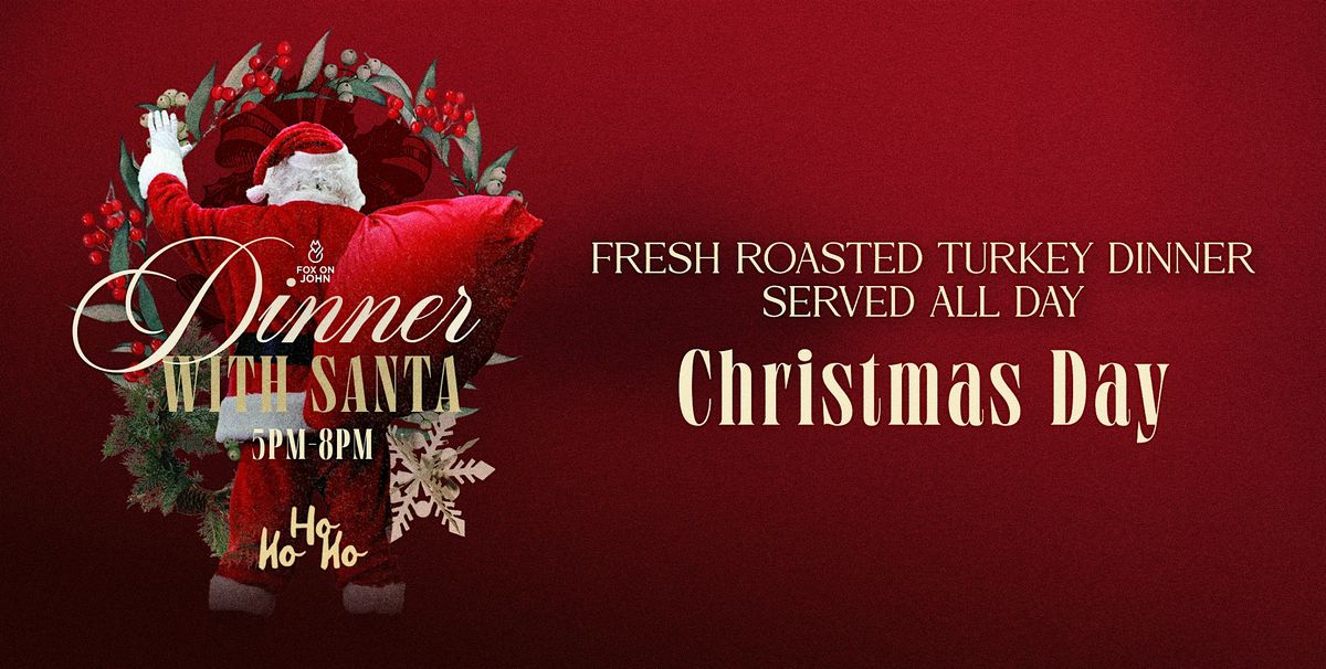 Make Christmas Day extra special with Dinner with Santa at Fox on John on December 25th from 5 PM – 8 PM. Whether you’re celebrating with family or gathering friends for a festive evening, we’re serving up all the holiday comforts in a warm, welcoming setting.
