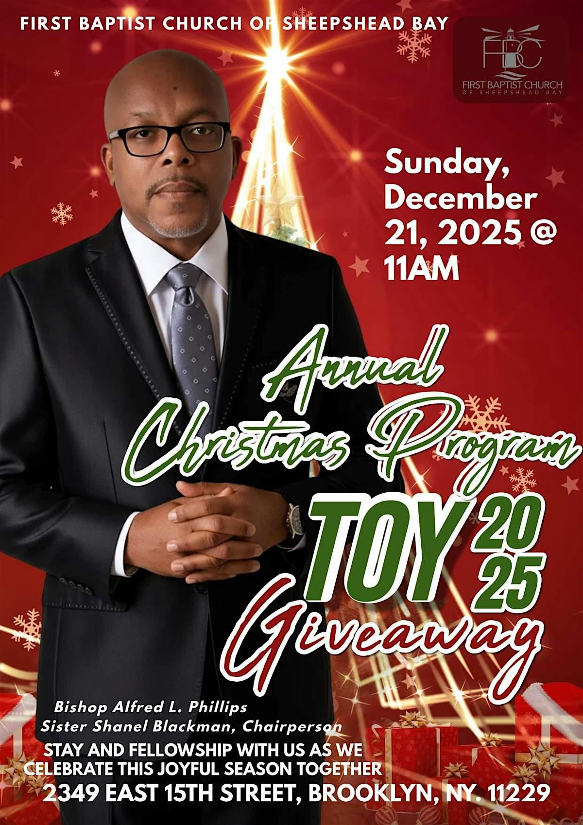 Please join us on Sunday, December 21st, 2025 at our 11am worship service for a Joint Christmas Fellowship Service and Toy Giveaeway with the First Baptist Church of Sheepshead Bay and Eternal Light Christian Church. Fellowship with us as we clelbrate tjis joyful season together.