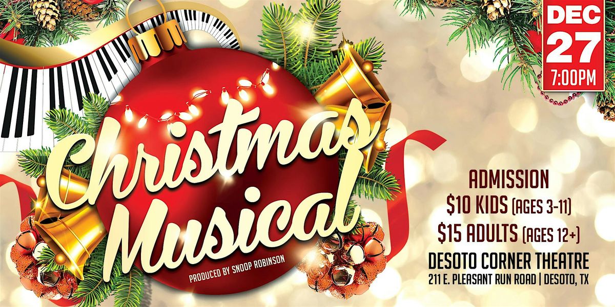 Join us for a festive night of music, joy, and holiday spirit at the 5th Annual Christmas Musical, hosted in the heart of DeSoto! This beloved community tradition brings together incredible vocalists, inspiring performances, and an atmosphere filled with Christmas cheer. Bring your family, friends, and neighbors for an unforgettable evening celebrating the season.