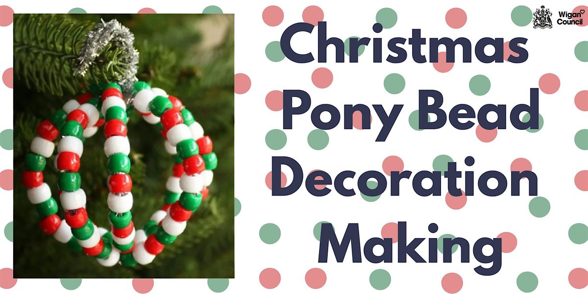 Join us at Wigan library to make a Christmas tree decoration using pony beads - add an extra special festive adornment to your tree! Suitable for age 4+ due to the small beads which will be used. All children aged under 9 years must be accompanied by an adult and careful supervision is strongly advised whilst using the beads. Please book a ticket for each child making a decoration, accompanying adults do not need to book a ticket.