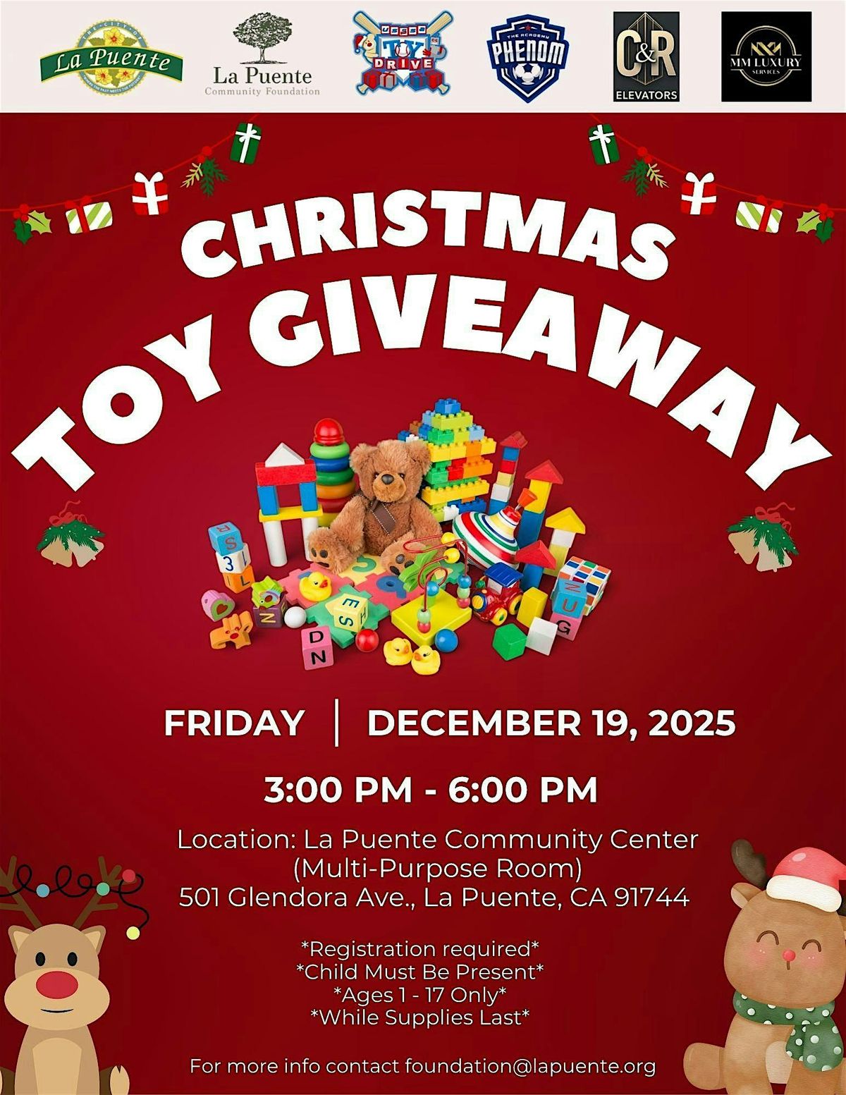 Join us in person for the Christmas Toy Giveaway and spread holiday joy with free toys for all registered kids!About this Event