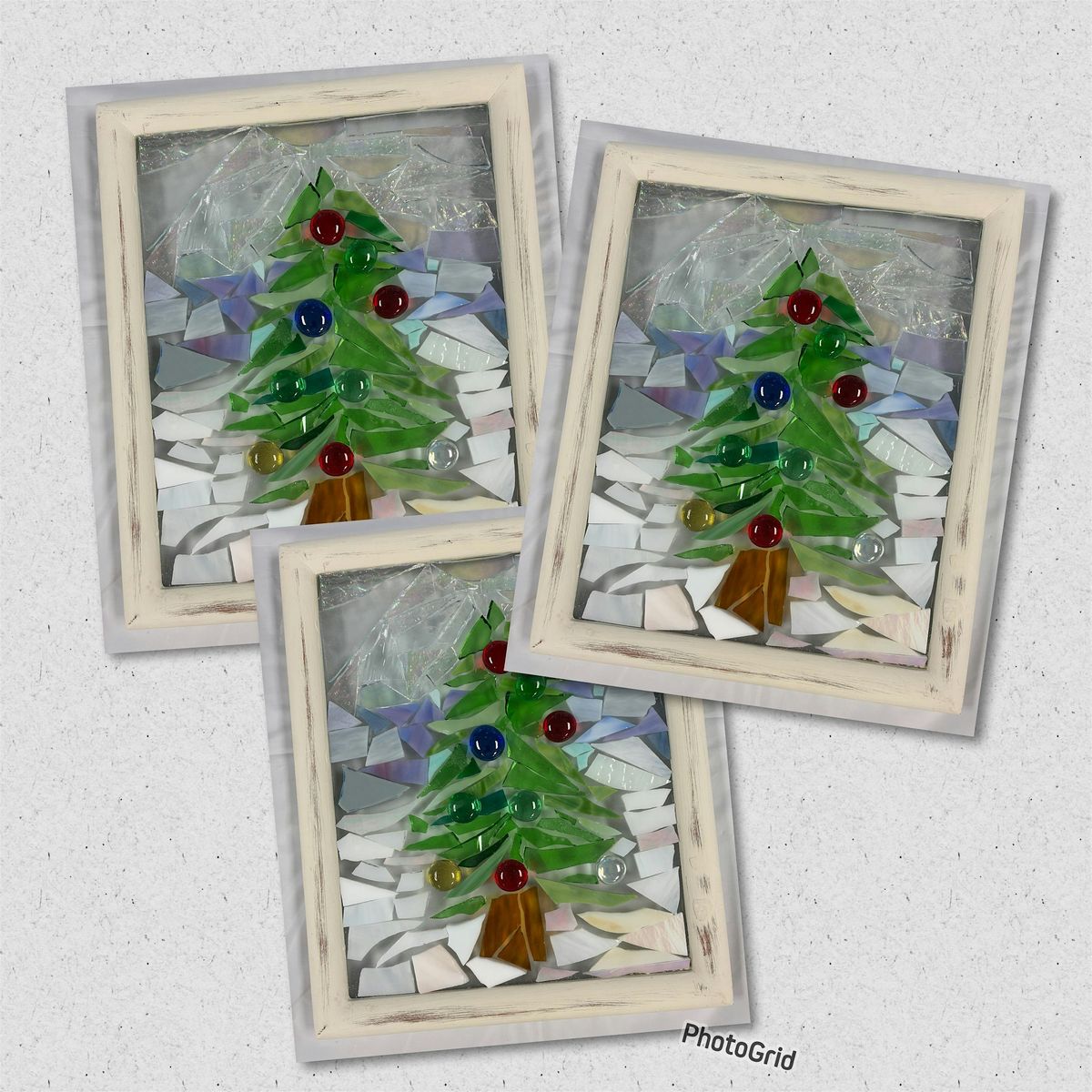 Create a unique glass Art Christmas Tree with recycled glass and resin in an 8x10 frame. All materials included