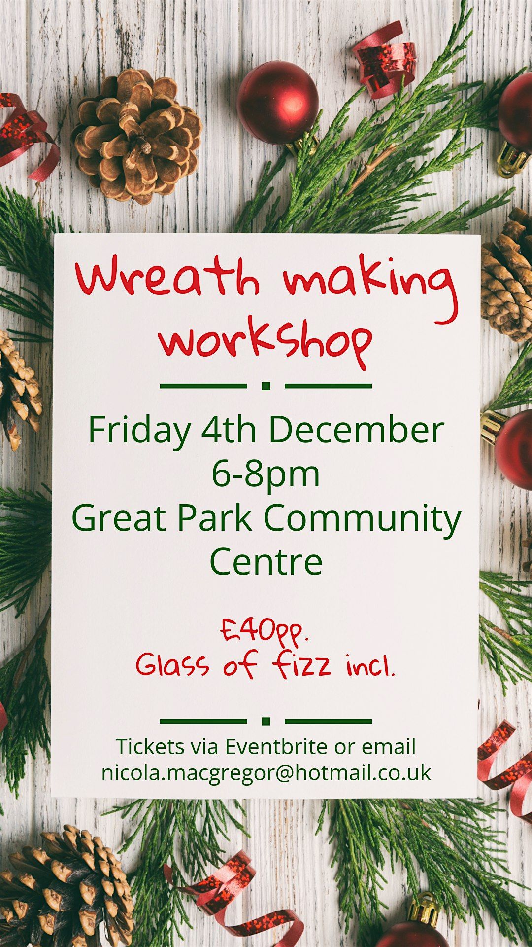 All materials and guidance provided and you're very welcome to buy 🍵drinks at the cafe or bring your own to sip as you create. There's a choice of colour schemes and decorations🎀 so your wreath really will be a one-off.