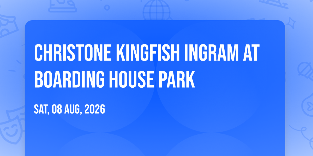 ✨ Discover the extraordinary at Christone Kingfish Ingram at Boarding House Park, where magic meets reality in ways you've never imagined! 🏛️ Set in Boarding House Park nestled in bustling Lowell, MA, this event promises to be a landmark occasion. 📅 Taking place on August 8th, 2026 at 07:30 PM, it's going to create an atmosphere where every moment becomes a cherished memory. 🌟 Immerse yourself in an experience crafted with attention to every detail, designed to surprise and delight at every turn. They have worked tirelessly to ensure this event exceeds all expectations, bringing together elements of entertainment, innovation, and pure joy. 🎊 Don't miss your chance to be part of this remarkable journey!