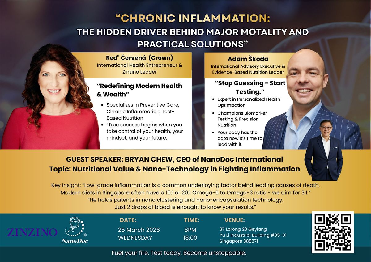 Chronic inflammation is a common underloying factor beind leading causes of death. Modern diets in Singapore often have a 15:1 or 20:1 Omega-6 to Omega-3 ratio - we aim for 3:1. He holds patents in nano clustering and nano-encapsulation technology. Just 2 drops of blood is enought to know your results.