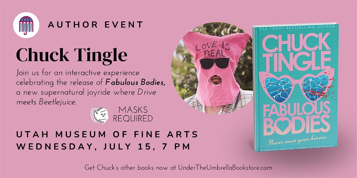 Please welcome bestselling author Chuck Tingle of Tingler genre infamy to celebrate his new supernatural horror novel Fabulous Bodies! Tingle will be presenting an interactive performance and discussing his new novel, followed by a Meet & Greet line. Join Under the Umbrella for a fabulous evening celebrating love at the Utah Museum of Fine Arts!