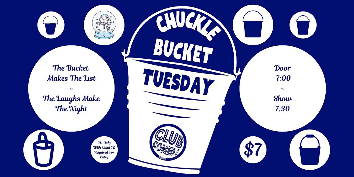 Club Comedy Seattle hosts Chuckle Bucket Tuesday each week. The luck of the bucket rules the night. Comics drop their name in and hope to be drawn for one of the spots on the list to tell jokes. It's fun, fast-paced and will keep you laughing hard on your Tuesday night.